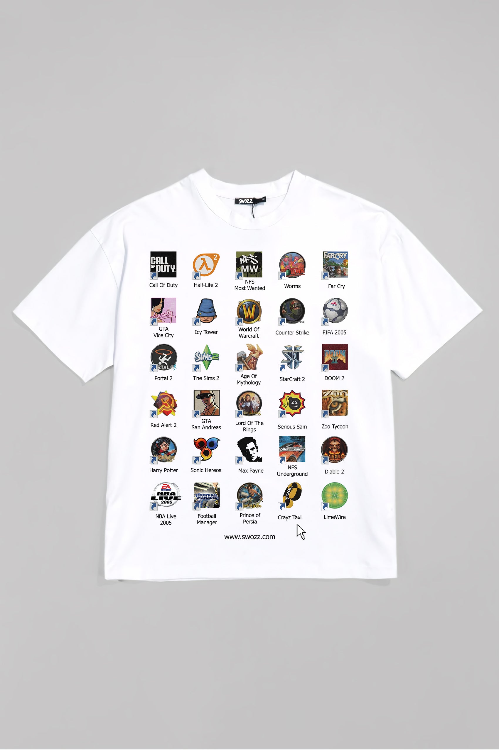 - Retro oyun ikonlarını taşıyan bu tişört, günlük kullanım için idealdir ve her yaş grubuna hitap eder.; - %80 pamuk içeriği ile konforlu bir deneyim sunarken, %20 polyester karışımı dayanıklılığı artırır.; - Dijital baskı teknolojisi sayesinde canlı ve net desenler uzun süre solma yapmadan kalır.; - Sadece tekli olarak sunulan bu ürün, kolay kombin yapabilmenizi sağlar ve şık bir görünüm kazandırır.; - Günlük ortamlarda rahatlıkla tercih edebileceğiniz bu tişört, bisiklet yakası ve kısa kollu tasarımıyla yaz aylarında serin tutar.; - Bisiklet yaka kesimiyle modern bir stil sunarken, sırt baskısı detayı ile dikkat çekici bir hava katıyor.; - Pamuklu kumaşı sayesinde cildinize nefes aldırırken tüylenme yapmayacak şekilde üretilmiştir.; - Örme kumaşı esnekliğiyle hareket özgürlüğü sağlarken regular fit silueti vücut hatlarınıza uyum sağlar.; - Young koleksiyonuna ait bu parça, genç ruhunu yansıtan dinamik tasarım anlayışını benimser.; - Unisex özelliğiyle hem kadınların hem de erkeklerin gardrobunda yerini alabilecek çok yönlülüğe sahiptir.; - Kutulu ambalajıyla gelen bu tişört, hediye olarak da tercih edilebilecek kalitededir.; Nostaljiyi sevenler için özel tasarım! 🌟2000’lerin efsane PC oyunlarını tek bir tişörtte buluşturduk.; GTA San Andreas, FIFA 2005, NFS Most Wanted, Counter Strike ve daha onlarca unutulmaz oyun simgesi bu tişörtün üzerinde seni bekliyor.; ✔ %100 pamuklu kumaş✔ Regular fit kalıp – günlük kullanım için rahat✔ Unisex tasarım – hem kadınlar hem erkekler için uygun✔ DTF yüksek çözünürlüklü baskı – canlı renkler ve uzun ömürlü kullanımBu tişört, oyun kültürünü üzerinde taşımak isteyenler için harika bir seçim.; Sokak modasında fark yarat, nostaljiyi stiline taşı!retro tişört, oyun tişörtü, gamer tshirt, gta tişört, fifa tişört, nfs tişört, unisex tshirt, beyaz tshirt, regular fit tshirt, baskılı tshirt