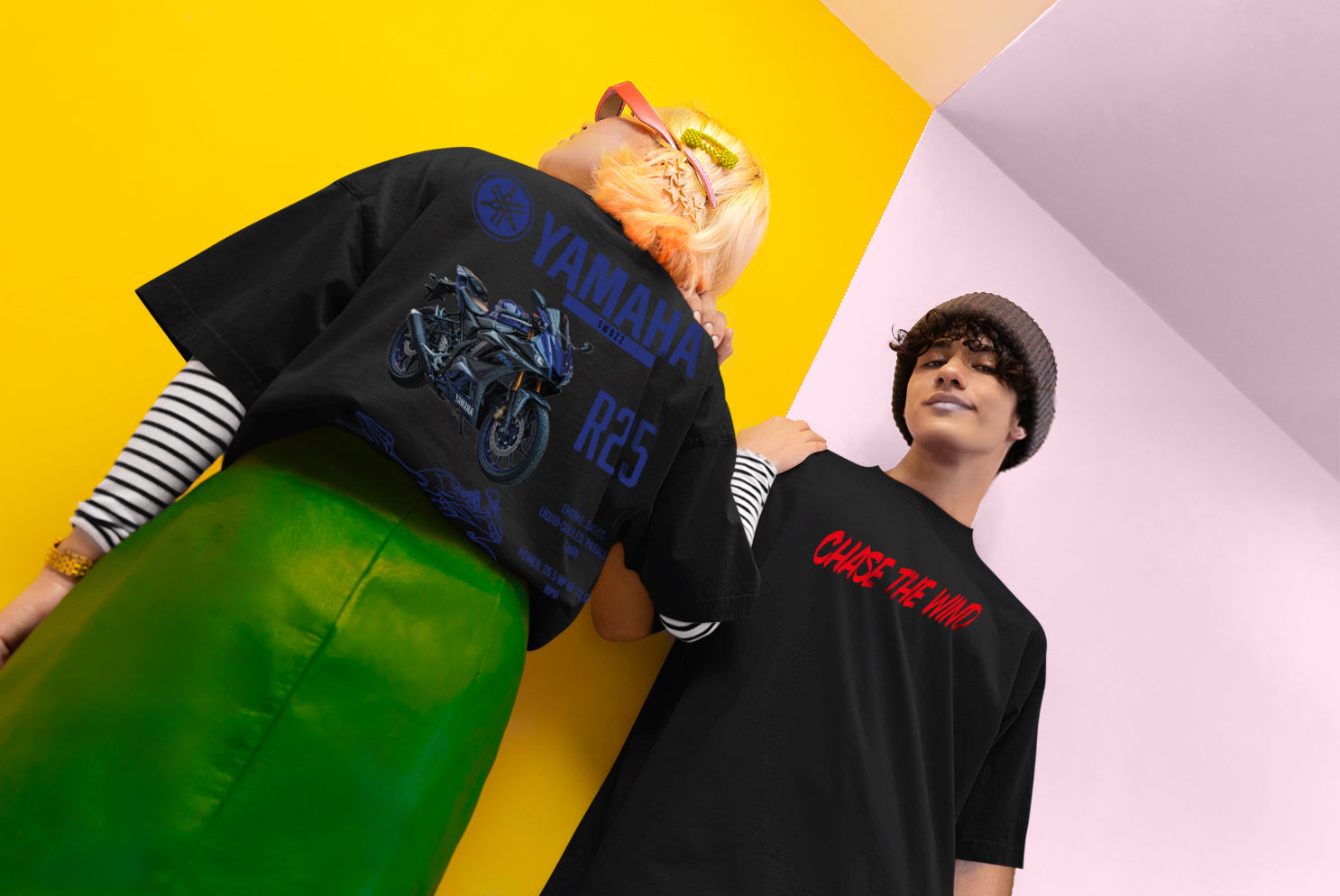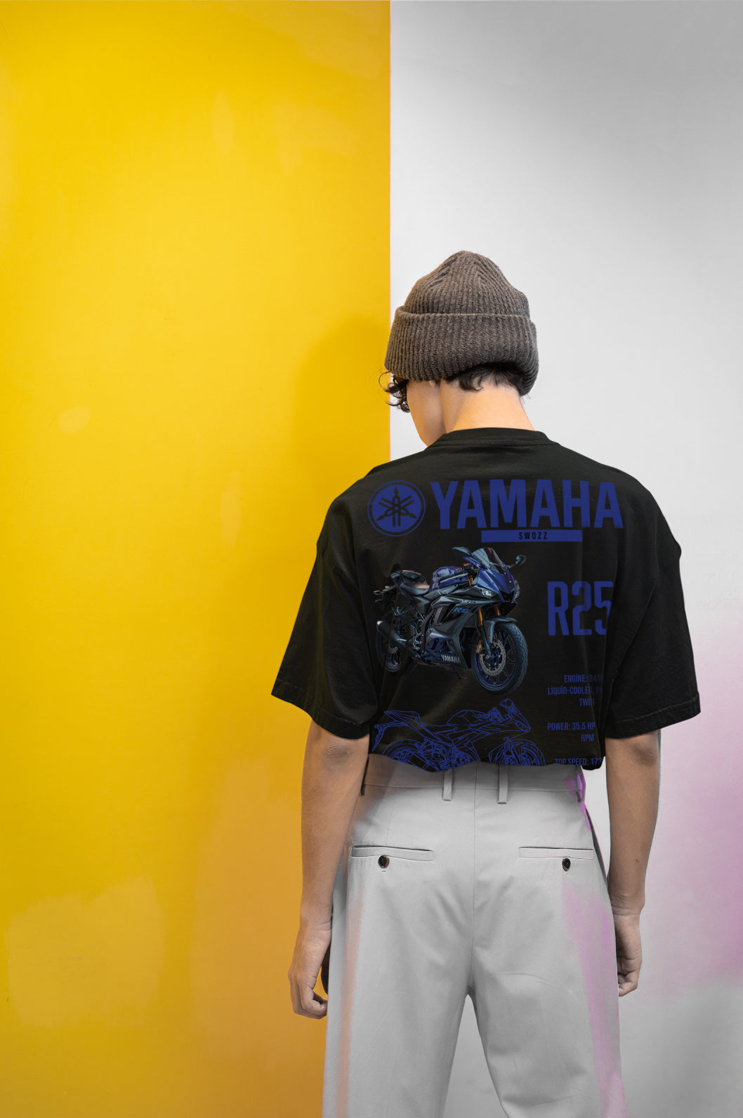 Yamaha R25 Tasarımlı Siyah Regular Unisex Tişört Chase the Wind Swozz Özel Serisi